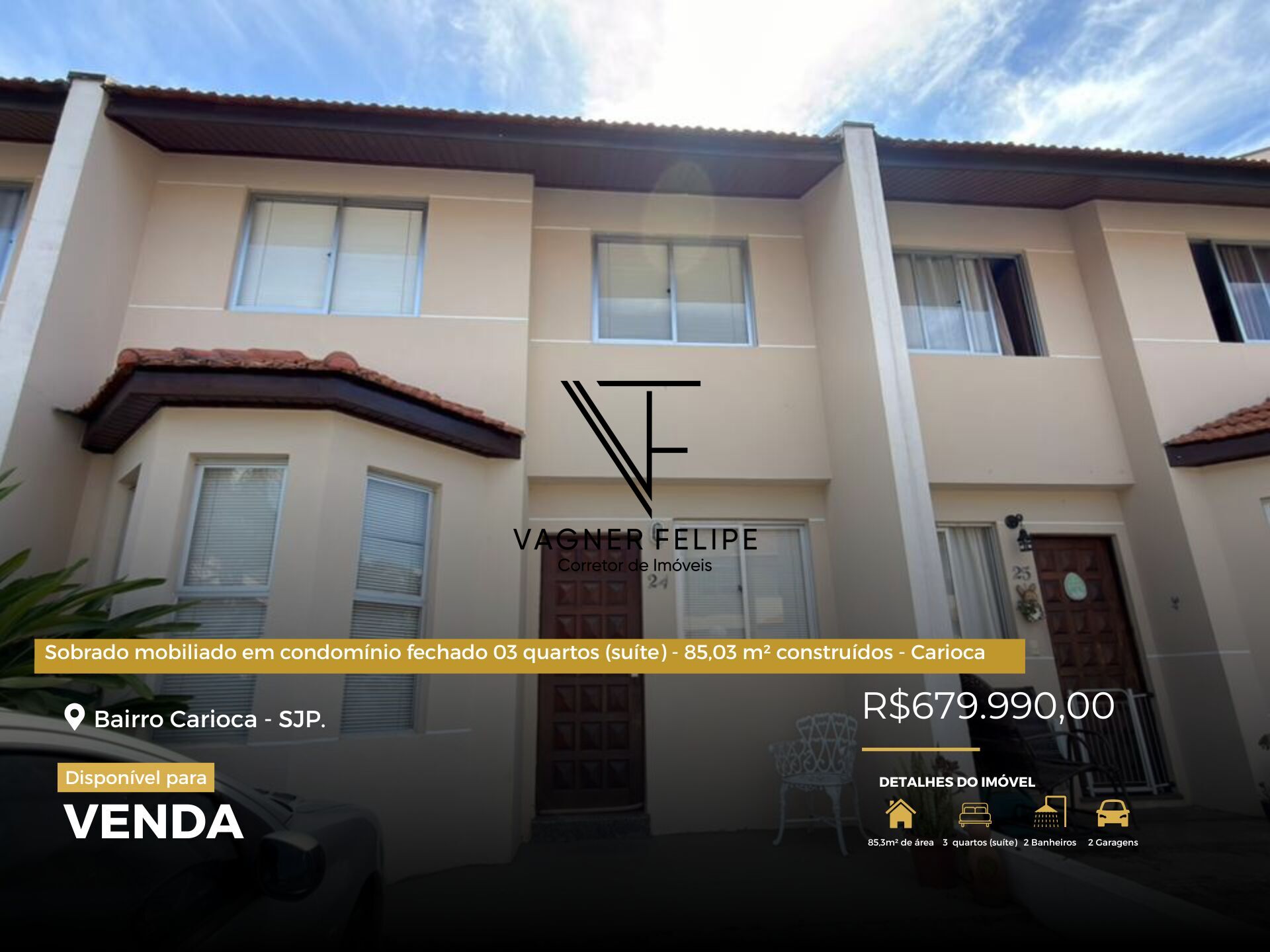 Sobrado mobiliado em condomínio fechado 03 quartos (suíte) - 85,03 m² construídos - Carioca